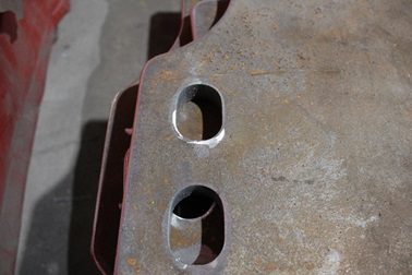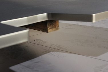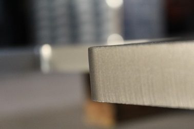 Plasma cutting creates almost right-angled and largely post-processing-free cut surfaces. The heat input during cutting results in a hardening on the cut surface, but this is less than with oxy-fuel cutting. The formation of burrs and roughness of the cut edges increase with the sheet thickness, see the following pictures of the cut edges. We sandblast the surface of the sheet metal.